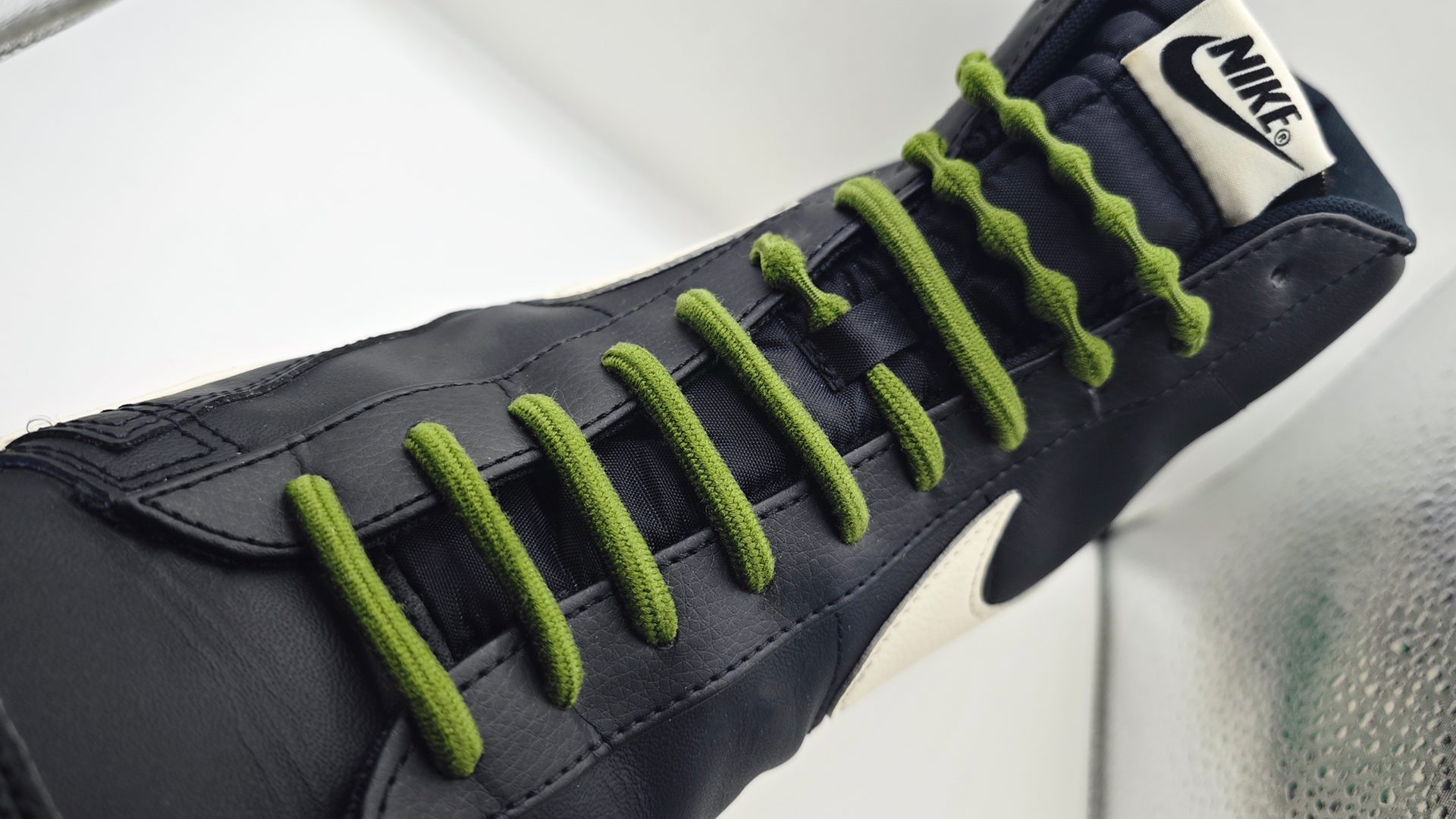 さらに紐の長さが要りそうなハイカット風のスニーカーを使います。