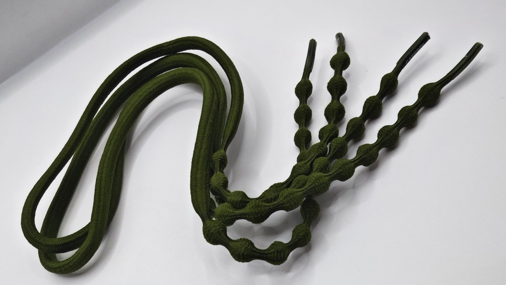 一見すると、普通の靴紐ですが、先端に近い部分は丸く膨らんでます。