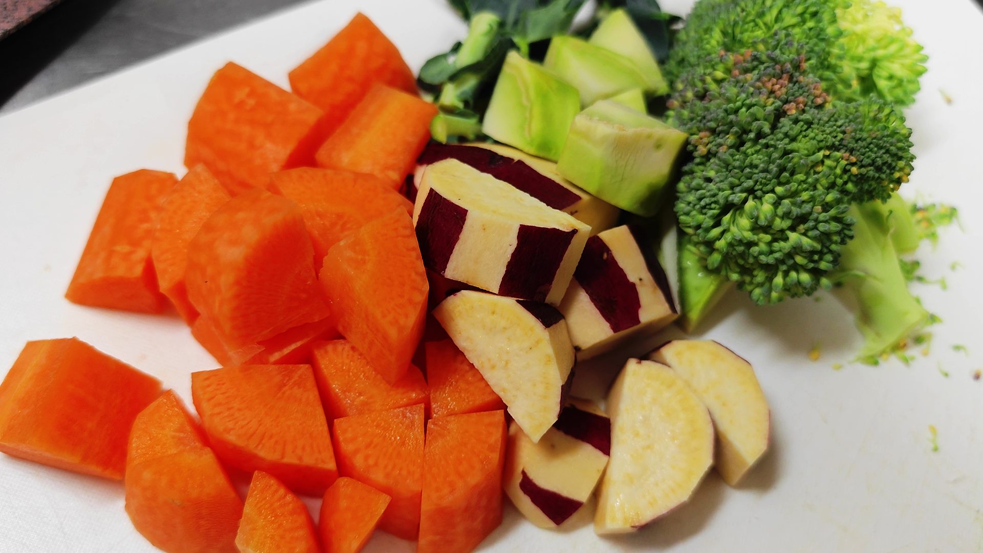野菜は皮を剥いて、こちらも適当なサイズにカットする。