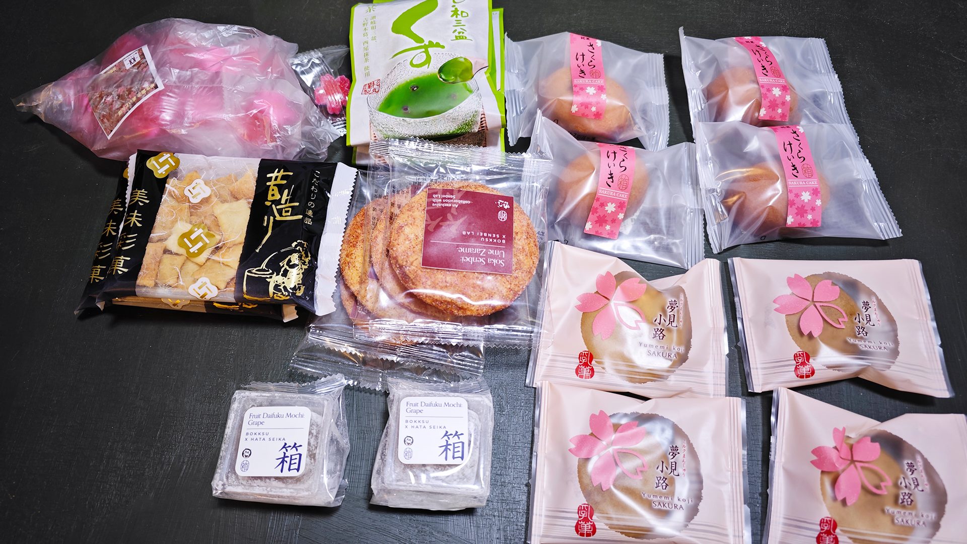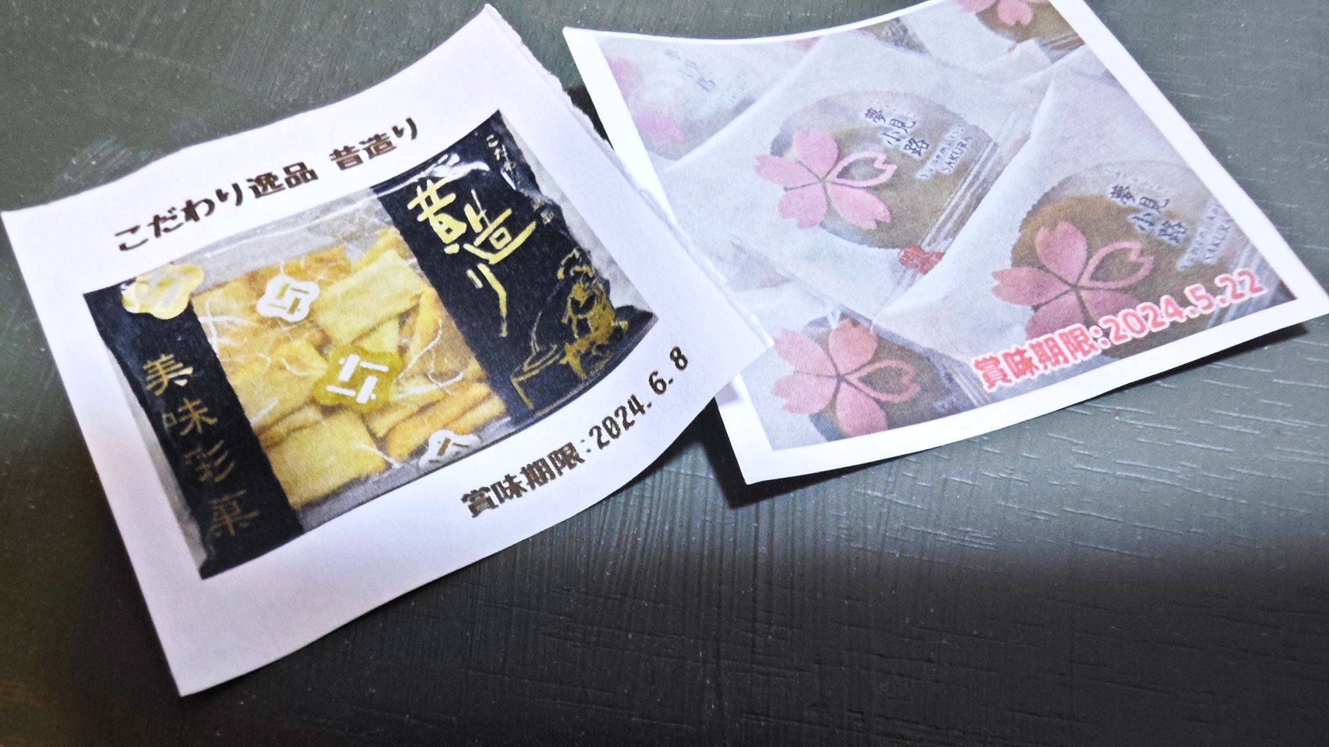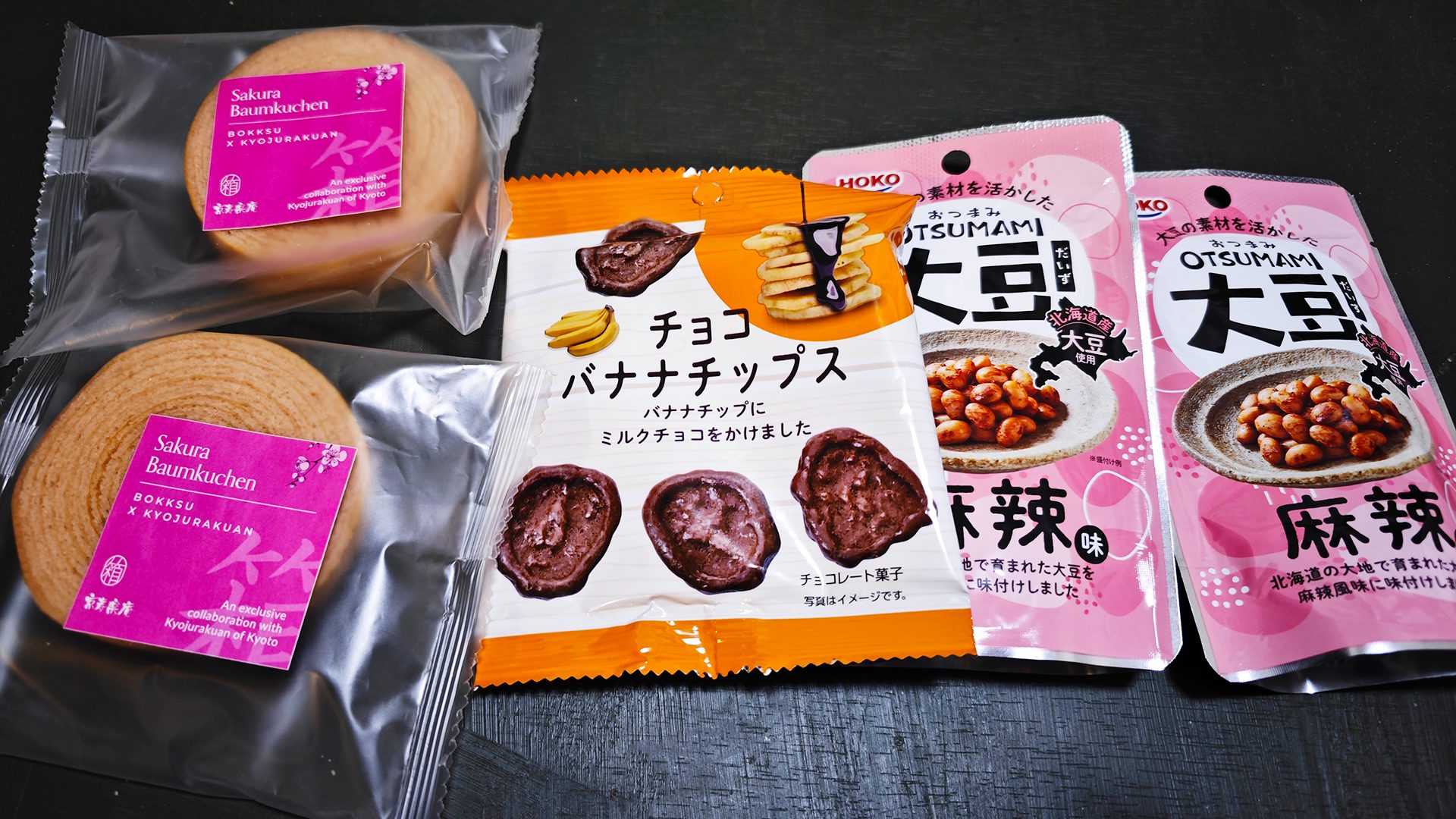 左上にポリ袋に入ったお菓子がありますが、