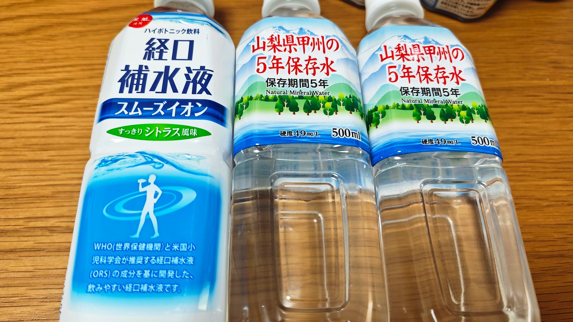 回ってきた備蓄品風の水や経口補水液が良く入ってます。