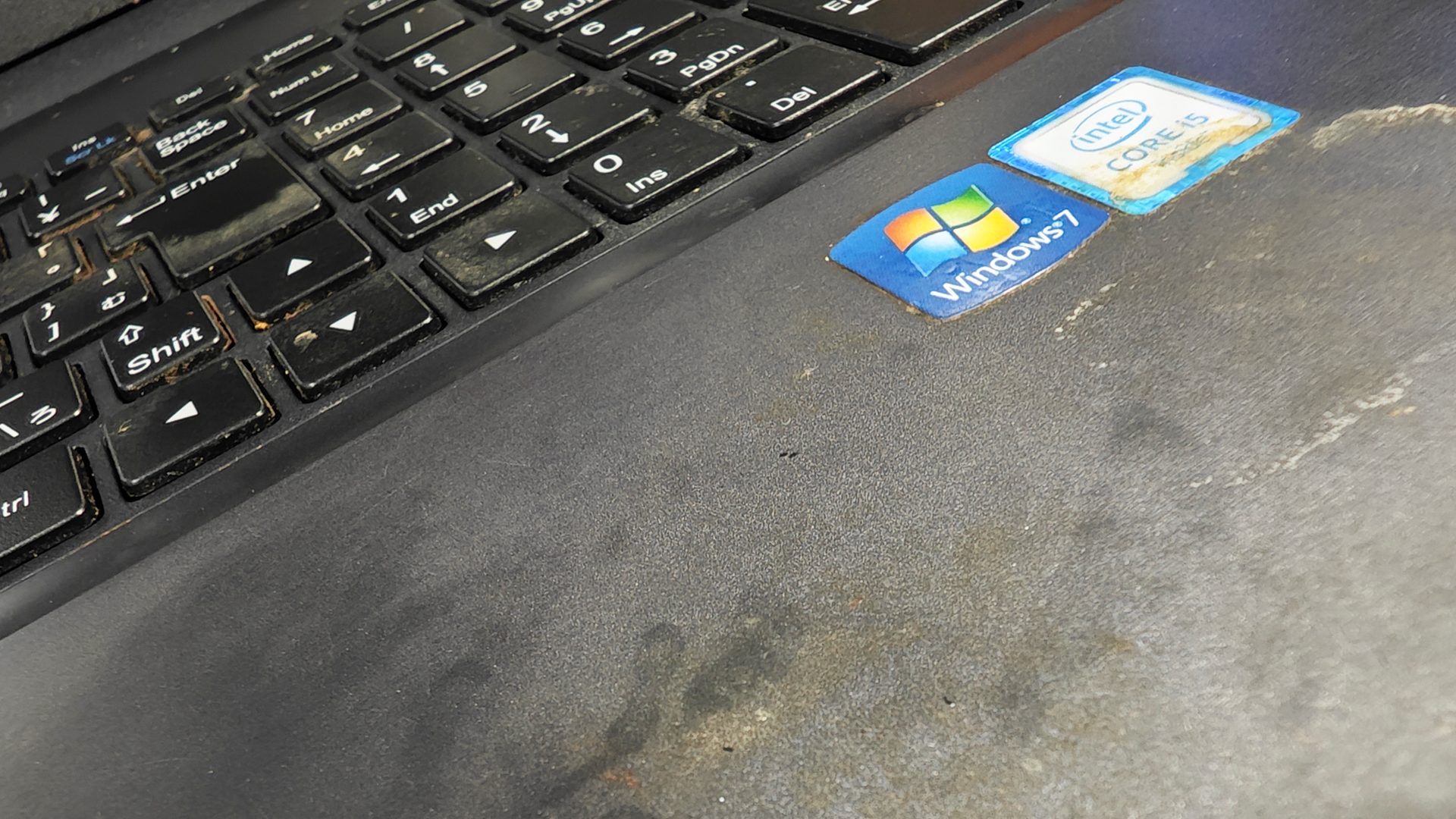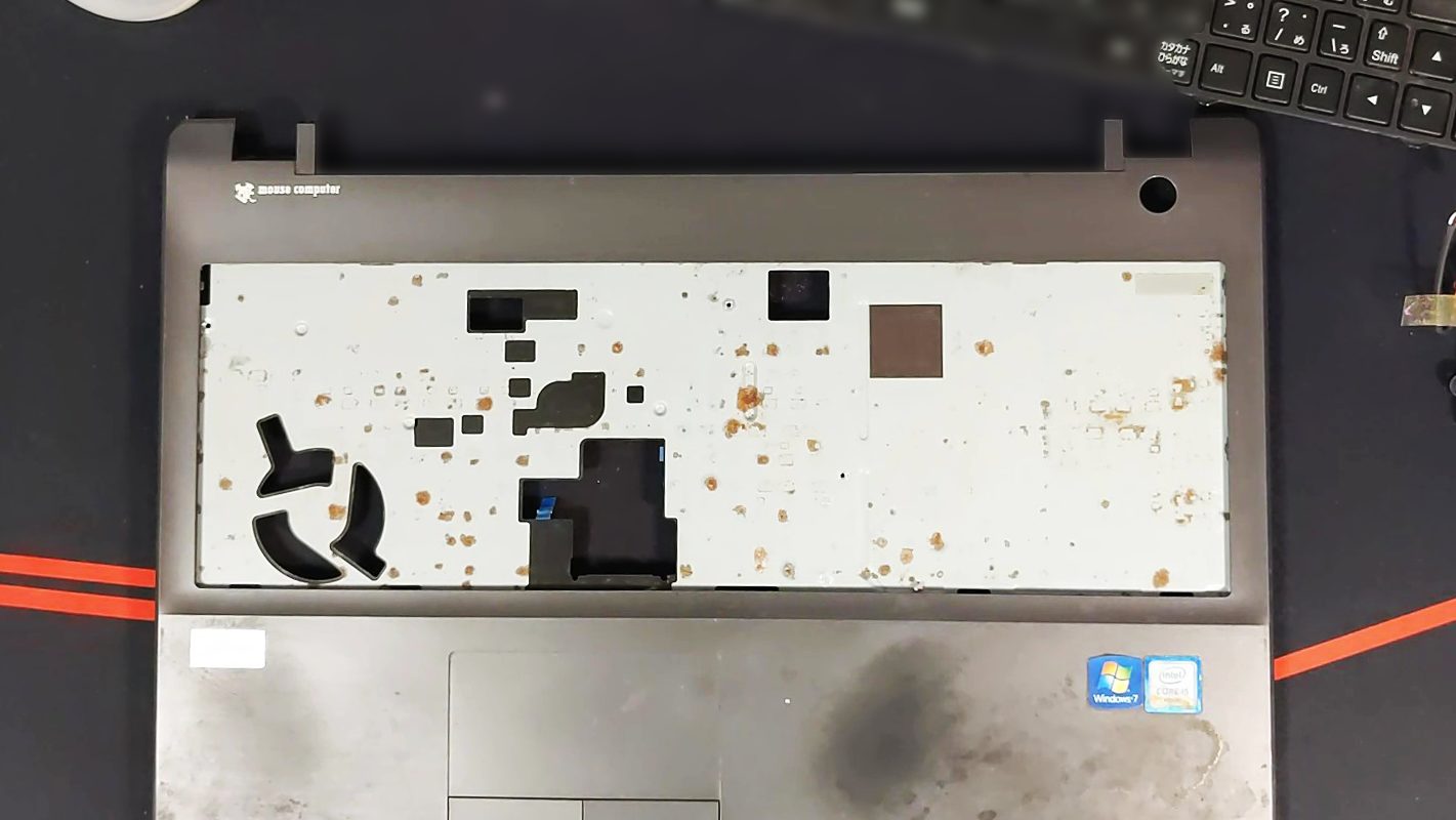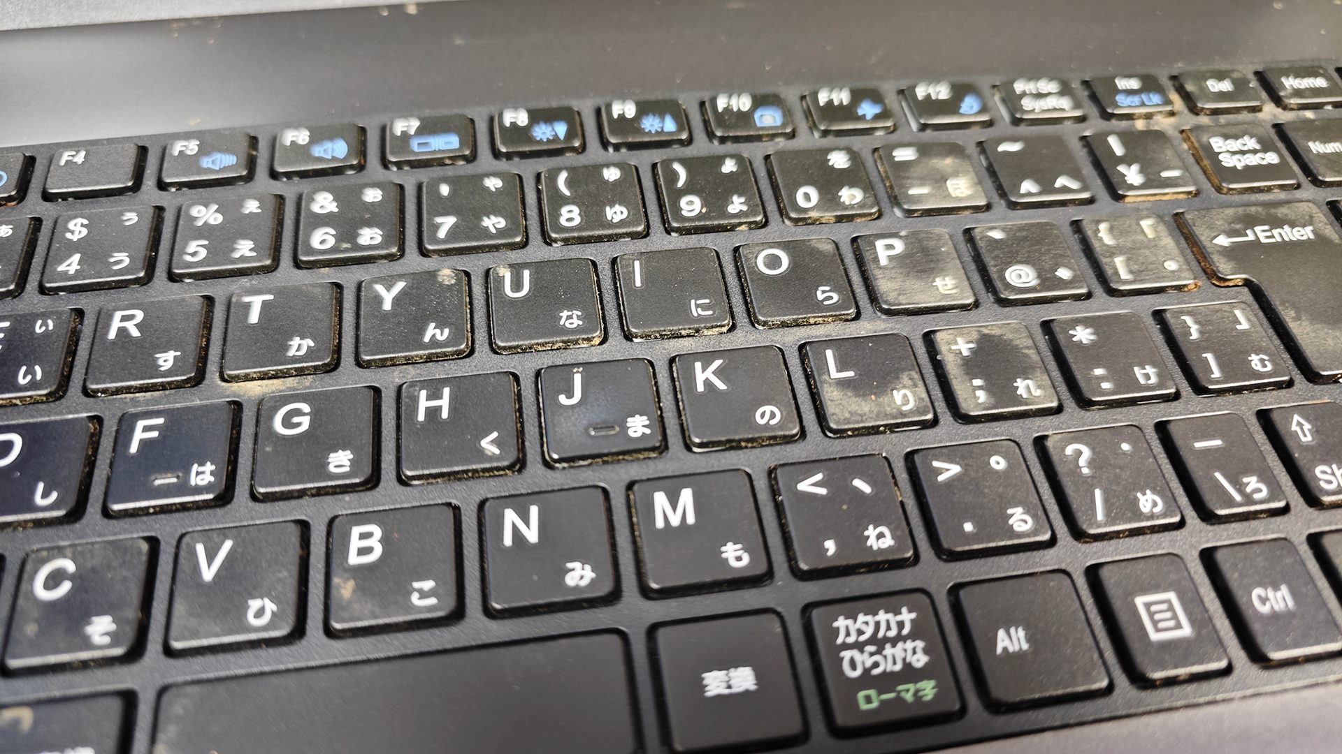 汚れているジャンクパソコンはよくありますが、キーボード付近に集中的な汚れがある場合、